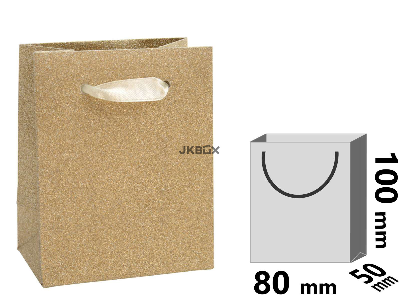 TERMÉK LEÍRÁSA - Csillogó krémszínű papírtáska szatén szalag füllel, ajándék részére. MG-11/A20/N mérete: 78x50x100 mm